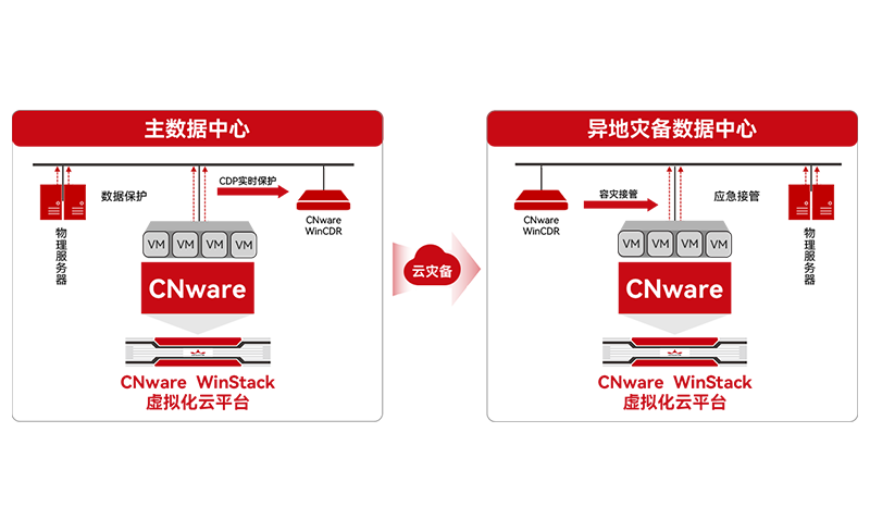 云宏WinCDR虚拟化容灾,提供三甲医院跨院区持续数据保护、业务容灾管理能力,虚拟化、云平台、物理机全保护虚拟机备份、容灾,保障业务连续,高效的传输效率,更快的接管速度,容灾资源统一管理。